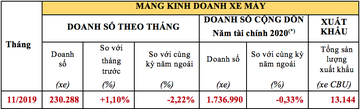Tổng số 230.288 xe, tăng 1,10% so với tháng trước và giảm 2,22% so với cùng kỳ năm ngoái. Trong đó: