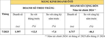 Công ty Honda Việt Nam (HVN) thông báo doanh số bán lẻ mảng kinh doanh xe máy & ô tô trong tháng 7/ 2023. Kết quả được tổng hợp bởi Cửa hàng Bán xe và Dịch vụ do Honda Ủy nhiệm/ Nhà Phân phối ô tô Honda giao cho khách hàng và theo ước tính của HVN.