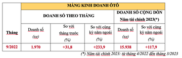 Doanh số: 1.970 xe, tăng 31,8% so với tháng trước, tăng 233,9% so với cùng kỳ năm ngoái, cụ thể: