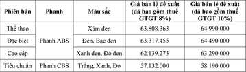 Trong đó, phiên bản Đặc biệt với tông màu đen/bạc đen chủ đạo cùng lớp sơn mờ và sắc đỏ được điểm lên các chi tiết xe, toát lên vẻ sang trọng mà đầy quyến rũ, bí ẩn. Phiên bản Thể thao sở hữu tông màu xám đen thời thượng và mạnh mẽ, là sự lựa chọn hoàn hảo cho những khách hàng theo đuổi phong cách trẻ trung và cá tính. Phiên bản Cao cấp và Tiêu chuẩn gây ấn tượng với các tông màu chủ đạo xanh, đỏ thời trang và thanh lịch, đáp ứng tối đa nhu cầu đa dạng và ngày càng tăng của khách hàng.