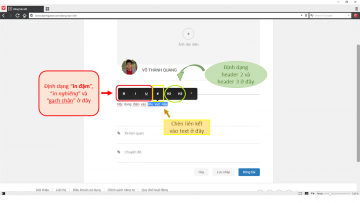 Sau khi đã nhập hết các nội dung cần thiết, việc định dạng khá đơn giản, chỉ cần tô đen phần chữ muốn định dạng, một hộp đen sẽ hiện ra với các tùy chọn :