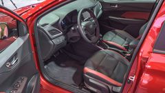 Không gian nội thất mẫu sedan cỡ nhỏ được tái thiết kế hoàn toàn với 2 tông màu thể thao, tạo điểm nhấn bắt mắt bởi các chi tiết màu đỏ, đi kèm là hệ thống thông tin giải trí với màn hình cảm ứng 7 inch, camera lùi được trang bị dưới dạng tiêu chuẩn.
