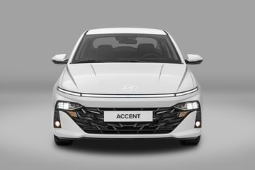 Phần đầu xe ấn tượng với dải đèn LED định vị ban ngày được kéo dài ngang hết toàn bộ chiều rộng xe. Cụm đèn chiếu sáng full LED được đặt thấp nằm liền mạch với lưới tản nhiệt. Lưới tản nhiệt của xe cũng được thiết kế mở rộng, tăng diện tích lấy gió đồng thời giúp tạo nên vẻ bề thế, ấn tượng hơn cho Accent.