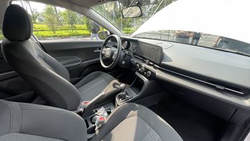 Không gian nội thất bên trong Hyundai Accent 2024 phiên bản số sàn sử dụng ghế bọc nỉ, đặc biệt là không trang bị màn hình giải trí. Việc trang bị màn hình giải trí từ hãng xe có thể gây tăng giá bán trong khi việc chủ xe tự trang bị các loại màn hình tháo xe hay Android sẽ chỉ có mức chi phí dưới 5 triệu đồng.