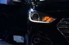Tương tự Elantra hay i30 mới, Accent 2017 được thiết kế theo ngôn ngữ "Điêu khắc dòng chảy" với điểm nhấn là lưới tản nhiệt Cascading Grille đặc trưng. Bên cạnh đó, cụm đèn pha LED bổ sung thêm đèn DRLs mới sắc sảo, hốc gió tích hợp đèn sương mù được mạ viền crom. Phía sau, đèn hậu tạo hình 3 dải LED đặc trưng. Mẫu sedan hạng B được trang bị bộ vành hợp kim tiêu chuẩn 15 inch và tùy chọn 16 inch.