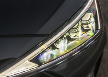 Ở lần nâng cấp này, Hyundai Elantra 2019 có diện mạo mới cuốn hút và nổi bật hơn. Phần cản trước và lưới tản nhiệt được sửa đổi, đèn pha tạo hình tam giác, đèn sương mù tái thiết kế với hốc gió nằm dọc bên cạnh.