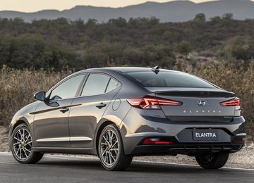 Phía sau, đuôi xe được trang bị cản mới, đèn hậu hình chữ L kéo dài sang hai bên, vị trí gắn biển số chuyển xuống thấp ở cản sau và dòng chữ “ELANTRA” nằm giữa nắp cốp sau, các bánh xe cũng đã được thiết kế lại với kích thước từ 15 tới 17-inch.