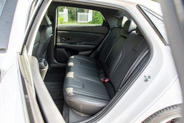 Nội thất Elantra 2023 nổi bật với bảng đồng hồ kỹ thuật số ghép cặp với màn hình giải trí trung tâm đồng kích thước 10,25 inch, ghế lái có chỉnh điện, hàng ghế trước tích hợp tính năng sưởi/làm mát, điều hoà tự động 2 vùng độc lập, cửa gió hàng ghế sau. Tiện ích khác có sạc không dây, ga tự động, phanh tay điện tử hay khởi động nút bấm.