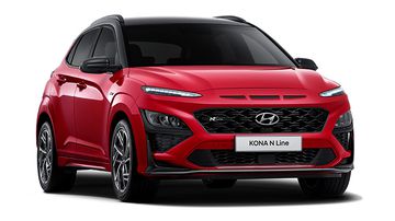 Với bản nâng cấp, ngoài biến thể 1.6 xăng và hybrid hiện có, Hyundai Kona lần đầu tiên có thêm bản N Line với diện mạo thể thao, mạnh mẽ và hầm hố hơn nhiều so với bản thường. Trên bản thẻ thao này được trang bị cản trước mới, 3 lỗ thông hơi nằm ngay phía trên lưới tản nhiệt dễ gợi liên tưởng đến những mẫu Audi RS. Bên cạnh đó là cánh lướt gió cho cản trước, ốp vòm bánh xe cùng tông màu thân xe và cản sau với bộ khuếch tán.