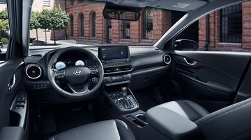 Bên trong nội thất, Hyundai Kona 2021 được trang bị bảng đồng hồ kỹ thuật số 10,25 inch, đi kèm màn hình trung tâm 10,25 inch. Haxg xe Hàn cho biết, Kona mới có nội thất yên tĩnh nhất phân khúc bởi được trang bị thêm kính chắn gió 2 lớp phía trước có dán phim cách âm, đi kèm là các vật liệu cách âm, cách nhiệt riêng cho từng bộ phận.
