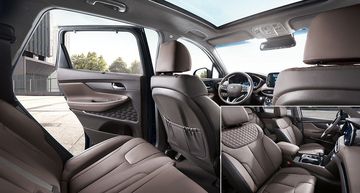 Phía bên trong, không gian nội thất của Hyundai Santa Fe cũng được "thay da đổi thịt". Khu vực bảng táp-lô được bố trí dạng 3 tầng, nổi bật chính giữa là màn hình giải trí dựng đứng. Ghế ngồi được bọc da cao cấp, thiết kế sang trọng hơn rất nhiều so với thế hệ trước.