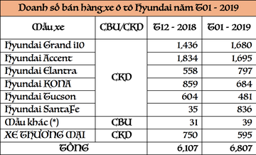 Doanh số bán hàng các mẫu xe Hyundai Thành Công trong tháng 1/2019: