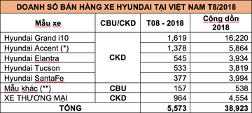 Các mẫu xe khác đều giảm so với tháng 7/2018, tuy nhiên không đáng kể. Đây cũng là diễn biến chung của những năm trước dây do tâm lý khách hàng chờ qua tháng Ngâu. Tổng doanh số tháng 8 của Hyundai Thành Công giảm 5% so với tháng trước, đạt 5,573 xe, và 38,923 xe cộng dồn 8 tháng đầu năm 2018.
