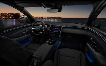 Tại quê nhà, Hyundai Tucson 2022 được trang bị vô lăng thiết kế mới dạng 4 chấu, cụm đồng hồ kỹ thuật số 10,25 inch, hệ thống thông tin giải trí với màn hình cảm ứng 8 inch hoặc 10,25 inch cùng hệ thống điều khiển điều hòa cảm ứng ở phía dưới, đèn nội thất đổi màu với tổng cộng 64 màu có 10 cấp độ sáng khác nhau, sạc không dây.