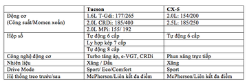 Nếu như người tiêu dùng vẫn còn phân vân giữa sự ngang sức của thiết kế 2 xe, thì đến phần động cơ hộp số, sự khác biệt của 2 xe đã khá rõ ràng. Trong khi Hyundai Tucson mang đến 3 sự lựa chọn động cơ hộp số thì Mazda CX-5 đem đến ít sự lựa chọn hơn