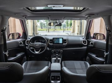 Đồng hồ thông tin của Venue được thiết kế dạng LED Digital giúp hiển thị các thông số một cách trực quan, đồng thời có thể thay đổi giao diện theo chế độ lái. Xe được trang bị điều khiển hành trình, giới hạn tốc độ MSLA, cảm biến áp suất lốp TPMS, đèn chiếu sáng tự động… đem đến một không gian tiện nghi bậc nhất trong phân khúc.