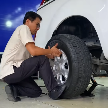An toàn là trên hết! Anh em phải luôn đảm bảo các bước chèn bánh, đặt kích đúng vị trí trước khi thao tác.