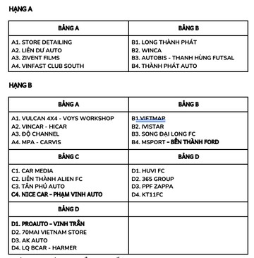 Ngoài ra, Hạng A còn có sự góp mặt nổi bật của sới phủi miền Nam như Vũ Xuân Du, Thiện Cá Chốt, Phúc Lủi, thủ thành Văn Khá, tiền đạo Minh Nhật hay Hồng Vương… Đặc biệt, Hạng A lần đầu có sự góp mặt của VinFast Club South, cộng đồng những người sử dụng xe VinFast tại phía Nam. Đây cũng là ẩn số đáng gờm tại giải đấu lần này.