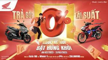 Chương trình “Rước xe hời – Bật hứng khởi” được triển khai từ ngày 06/02/2023 đến hết ngày 31/03/2023 với nội dung khuyến mại: Hỗ trợ mua trả góp tại các Cửa hàng Bán xe và Dịch vụ do Honda Ủy nhiệm (HEAD) với mức lãi suất 0% dành riêng cho khách hàng mua xe Honda Winner X hoặc Honda Vario 160.