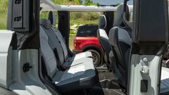 Một trong những đặc điểm của Ford Bronco để cạnh tranh với đối thủ từ Jeep chính là hệ thống cửa và nóc xe có thể tháo rời để mang đến không gian thoáng đãng nhất có thể và phần thùng sau là nơi chứa những phần có thể tháo rời này. Đặc biệt, chi tiết gương hậu được gắn trên nắp capo xe kéo ra nên không ảnh hưởng đến việc tháo cửa xe như các mẫu xe gắn gương hậu trên cánh cửa.