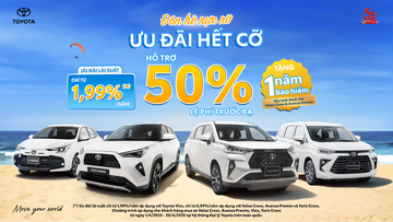 Trước thềm kỷ niệm 30 năm có mặt tại thị trường Việt Nam, Toyota tiếp tục mang đến cho khách hàng cơ hội sở hữu ô tô dễ dàng hơn. Theo đó, chính sách hỗ trợ đến 50% lệ phí trước bạ được áp dụng cho 4 mẫu xe Vios, Yaris Cross, Veloz Cross và Avanza Premio. Mức hỗ trợ không vượt quá mức hỗ trợ tối đa theo từng dòng xe, khách hàng tiết kiệm 23-27 triệu đồng khi mua Vios, 28-30 triệu đồng khi mua Avanza Premio, 32-33 triệu đồng với Veloz Cross và 33-38 triệu đồng với Yaris Cross. Hơn thế, khi mua Veloz Cross, Avanza Premio, khách hàng còn được tặng 01 năm bảo hiểm thân vỏ.