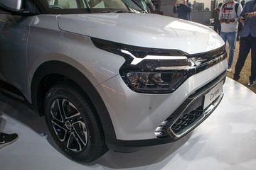 Kia Carens 2023 được áp dụng ngôn ngữ thiết kế Opposites United, phần đầu xe được trang bị lưới tản nhiệt hình lục giác cỡ lớn cùng hệ thống đèn 2 tầng với dải đèn LED định vị ban ngày nằm trên và đèn pha ở dưới.