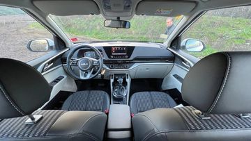 Nội thất Carens 2023 được trang bị màn hình giải trí trung tâm 10,25 inch dạng cảm ứng, tích hợp hệ thống thông tin giải trí Kia Connect hỗ trợ cập nhật tự động qua Internet, 8 loa Bose, đèn nền nội thất 64 màu, cửa sổ trời SkyLight, thay đổi chế độ lái và hệ thống lọc khí bảo vệ người dùng khỏi virus và vi khuẩn. Xe có 2 tùy chọn cấu hình 6 chỗ hoặc 7 chỗ.