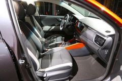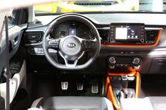 Phía bên trong, khoang cabin của Stonic được phát triển dựa trên chiếc Rio hatchback thế hệ thứ tư. Xe được trang bị ghế ngồi bọc vải nỉ, ghế trước có chức năng sưởi, vô-lăng 3 chấu bọc da tích hợp các phím chức năng, màn hình cảm ứng tương thích Apple CarPlay hay Android Auto. Ngoài ra, KIA cũng cho biết thêm là Stonic có khoảng cách từ vai người ngồi đến trần lớn nhất phân khúc, thể tích khoang hành lý lên đến 352 lít.