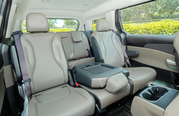 Bên cạnh đó, hàng ghế 3 trên Kia New Carnival được nhiều khách hàng đánh giá cao khi có thể điều chỉnh góc ngả lưng lên đến 120 độ hoặc gập phẳng giúp gia tăng không gian chứa đồ. Hàng ghế này có khoảng để chân rộng và khoảng sáng trần lớn, tạo không gian ngồi thông thoáng, thoải mái.