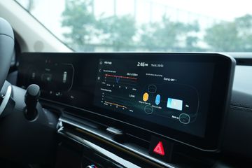 Mặt khác, phiên bản Kia New Carnival Hybrid còn có khả năng tùy chỉnh cấp độ phanh tái tạo năng lượng (tăng hoặc giảm mức độ phanh tái tạo) thông qua lẫy chuyển số sau vô lăng khi xe vận hành ở chế độ Eco/Smart, giúp người lái dễ dàng điều chỉnh các cấp độ tái tạo năng lượng nhiều hay ít tùy theo điều kiện lái xe nhằm tối ưu nhiên liệu khi di chuyển. Điểm nhấn của phiên bản HEV là trang bị cửa gió bên dưới cản trước có chức năng đóng mở tự động theo điều kiện vận hành, giúp tăng hiệu suất khí động học và tiết kiệm nhiên liệu. Khi xe di chuyển, hệ thống này sẽ đóng lại ngăn luồng không khí vào khoang động cơ để giảm sức cản không khí, tăng hiệu suất khí động học. Khi cần thiết hệ thống này sẽ mở ra đưa luồng khí bên ngoài vào để làm mát động cơ, bộ tản nhiệt hoặc hệ thống điện.