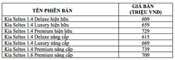 Kia Seltos hiện được phân phối tại thị trường Việt Nam với 3 phiên bản khác nhau Deluxe, Luxury và Premium. Ngoài trang bị động cơ 1.4 Turbo trên cả 3 phiên bản, bản Premium sẽ có thêm trang bị động cơ 1.6 MPI. Khách hàng được cung cấp 9 tùy chọn sắc màu với 5 màu đơn và 4 tùy chọn kết hợp 2 tông màu cá tính.