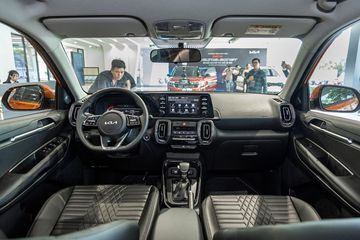 Là mẫu xe sở hữu kích thước lớn hàng đầu trong phân khúc, cụ thể, kích thước (dài x rộng x cao) lần lượt là 4.120 x 1.790 x 1.642 (mm), và chiều dài cơ sở là 2.500mm, Kia New Sonet sở hữu không gian bên trong rộng rãi; khoang lái hiện đại, thông minh với tầm quan sát tốt cùng nhiều trang bị tiện nghi hỗ trợ người lái. Nội thất của Kia New Sonet thể hiện sự cao cấp khi trang bị ghế chất liệu da mềm mại, họa tiết sắc nét cùng tùy chọn tông nội thất đen sang trọng.