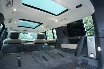 Phần đuôi xe được kéo dài một cách thanh lịch đem tới không gian không thỏa hiệp dành cho hàng ghế thứ ba, với chiều rộng đủ chỗ ngồi thoải mái cho ba người lớn, trong khi kiểu dáng quen thuộc của Defender đảm bảo trần xe thoáng đãng cho cả ba hàng ghế.