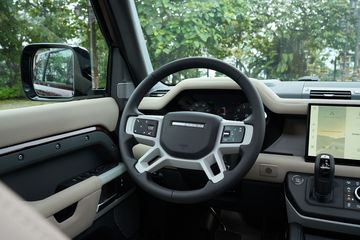 Hành khách ngồi hàng ghế thứ hai và thứ ba có vị trí ngồi cao hơn để có tầm nhìn vượt trội. Việc bước vào hàng ghế thứ ba rất dễ dàng, nhờ hàng ghế thứ hai có thể trượt và gập về phía trước để mở ra lối vào rộng rãi. Từ cửa khoang hành lý, khách hàng có thể hạ chiều cao đuôi xe thông qua hệ thống treo khí nén của Defender thông qua các nút bấm trong khoang hành lý để trợ giúp việc cất giữ đồ đạc phía sau.