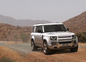 Kiểu dáng mang tính biểu tượng của Defender đã được kéo dài thêm 340mm ở phía sau một cách trang nhã để gia tăng thêm không gian nội thất cho cả ba hàng ghế mà không ảnh hưởng đến khả năng vượt mọi địa hình của chiếc xe, gia tăng không gian nội thất với thể tích khoang hành lý tối đa lên đến 2,5161 lít và ba hàng ghế cỡ lớn.