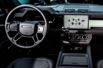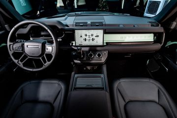 Nội thất bền bỉ và đa dụng của Defender cũng đón nhận những điểm đặc biệt tương tự, với thiết kế bảng táp-lô màu Xanh lá Grasmere và biểu tượng 75 năm được khắc laser trên vách táp-lô. Ghế ngồi được hoàn thiện bởi chất liệu Resist màu đen Ebony, và bệ trung tâm đươc bọc chất liệu Robustec - loại vải bền bỉ nhất hiện có trên Defender.