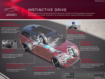 Hệ Thống Treo Khí Nén Thể Thao đóng vai trò quan trọng đối với khả năng địa hình của Range Rover Sport Mới, có thể nâng lên 135mm ở những tình huống khắc nghiệt nhất trong tối đa 15 giây khi phát hiện bánh xe trượt, để duy trì tiến độ ở các khớp nối trên những cung đường địa hình khó khăn nhất.