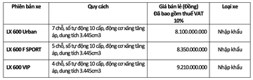 Lexus LX600 có giá bán cao nhất 9,2 tỷ đồng tại Việt Nam
