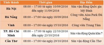 Chuỗi sự kiện “Lái và Trải nghiệm mu-X & D-Max” diễn ra từ tháng 09/2016 đến tháng 10/2016 theo lịch trình sau đây: