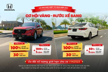 Theo đó, người dùng sẽ có cơ hội cuối cùng nhận hỗ trợ đặc biệt với số lượng giới hạn khi mua các dòng xe sản xuất năm 2023 (VIN2023), bao gồm Honda CR-V L/G và Honda City. Cụ thể, khách hàng khi mua Honda CR-V L/G VIN2023 sẽ được hỗ trợ 100% lệ phí trước bạ, hỗ trợ 30 triệu đồng tiền mặt hoặc 1 năm bảo hiểm thân vỏ, đi kèm nhiều ưu đãi hấp dẫn khác từ nhà phân phối.
