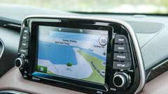 Hyundai Santa Fe dùng màn hình kích thước 8-inch, hỗ trợ Apple CarPlay, bản đồ định vị dẫn đường dành riêng cho thị trường Việt Nam, kết nối USB/Bluetooth/MP4/AUX, âm thanh 6 loa với bộ xử lý Arkamys Premium Sound.