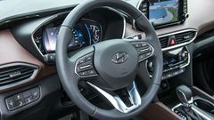 Vô-lăng của Santa Fe và Fortuner bọc da, tích hợp lẫy chuyển số phía sau và các phím chức năng như đàm thoại rảnh tay, điều chỉnh âm thanh và ga tự động Cruise Control. SantaFe có thêm 2 ưu điểm nhỏ là: màn hình táp-lô phong cách digital hiện đại hơn kiểu Optitron trên Fortuner và tích hợp thêm màn HUD hiển thị trên kính lái.