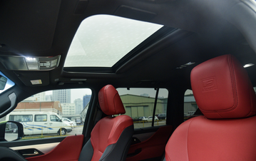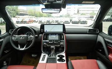 Bước vào bên trong, không gian nội thất bên trong của LX 600 F Sport có đôi chút cổ điển pha lẫn nét hiện đại và dễ bị thu hút bởi 2 màn hình trung tâm riêng biệt kích thước 7 inch và 12,3 inch. Vô-lăng xe Lexus LX600 F Sport được bọc da, sau vô-lăng là bảng đồng hồ kỹ thuật số. Nội thất xe bọc bằng chất liệu da có tông màu màu đỏ Flare Red thể thao, ở tựa đầu và bậc cửa đều có logo F Sport.