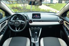 Tay lái có thiết kế mới, tích hợp các nút điều khiển chức năng, giúp người lái thao tác nhanh chóng và thuận tiện hơn trong mọi tình huống. Hệ thống kiểm soát hành trình Cruise Control – một trang bị mới trên Mazda2, gia tăng tiện ích cho người dùng. Ở phía sau, lẫy chuyển số cũng lần đầu tiên được trang bị trên Mazda2, giúp người lái chủ động hơn trong những tình huống cần tăng tốc đột ngột để vượt xe, hay leo đèo.