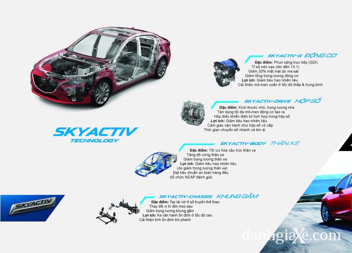Công nghệ vượt trội - Xe được trang bị công nghệ SkyActive hàng đầu của Mazda với sự tối ưu hóa và cách tân mạnh mẽ cho 4 phần quan trọng là động cơ, hộp số, khung gầm, và hệ thống lái. Bên cạnh đó, Mazda 3 2015 còn được ứng dụng hàng loạt công nghệ đỉnh cao của Mazda như: i-Stop: khởi động/ ngừng động cơ tốt hơn nhiều so với hệ thống start-stop, giúp xe tiết kiệm nhiên liệu 10%,…