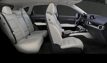 Trên hai phiên bản 2.5L, hàng ghế trước đều chỉnh điện, ghế lái có thêm tính năng ghi nhớ vị trí. Màn hình hiển thị kính lái HUD, gương chiếu hậu chống chói tự động, cửa sổ trời, điều hòa tự động 2 vùng độc lập, hệ thống âm thanh 10 loa Bose... Đặc biệt, CX-5 thế hệ mới đã bắt kịp các đối thủ khi có thêm dàn lạnh cho hàng ghế sau.