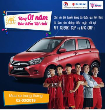 Cuối cùng là Suzuki với chương trình tặng 01 bảo hiểm vật chất cho các khách hàng mua mẫu Celerio từ 01/02/2019 đến hết ngày 31/03/2019. Chương trình được áp dụng tại 37 Đại lý Ôtô Suzuki ủy quyền trên toàn quốc.