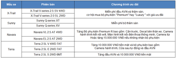 Tiếp theo là hãng Nissan với chương trình ưu đãi áp dụng cho các mẫu X-Trail, Sunny, Navara và Terra: