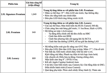 New Mazda6 có 03 phiên bản khác nhau với 02 tùy chọn động cơ 2.0L và 2.5L, tích hợp nhiều trang bị hiện đại, công nghệ vận hành và an toàn theo từng phiên bản. Mặc dù có nhiều thay đổi và nâng cấp đáng kể, nhưng New Mazda6 có mức giá khởi điểm chỉ từ 889 triệu đồng.