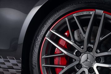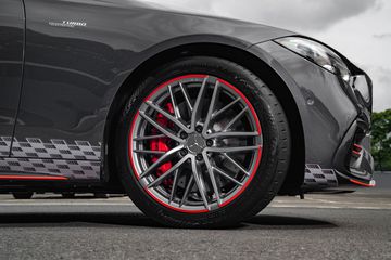 Một điểm nhấn đặc trưng trên những chiếc xe hiệu suất cao của thương hiệu Mercedes-AMG được trang bị trên xe là hệ thống phanh thể thao AMG được thiết kế với 4 pít-tông màu bạc và kẹp phanh thể thao sơn đỏ với ký hiệu “AMG” màu đen.